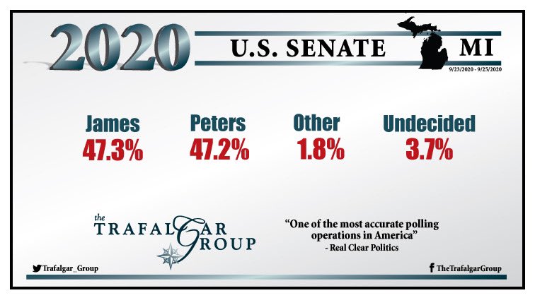 Cahaly tweeted on Sept. 30 that a poll conducted Sept 23 through Sept. 25 shows 47.3% of citizens surveyed prefer James compared to 47.2% for Peters.